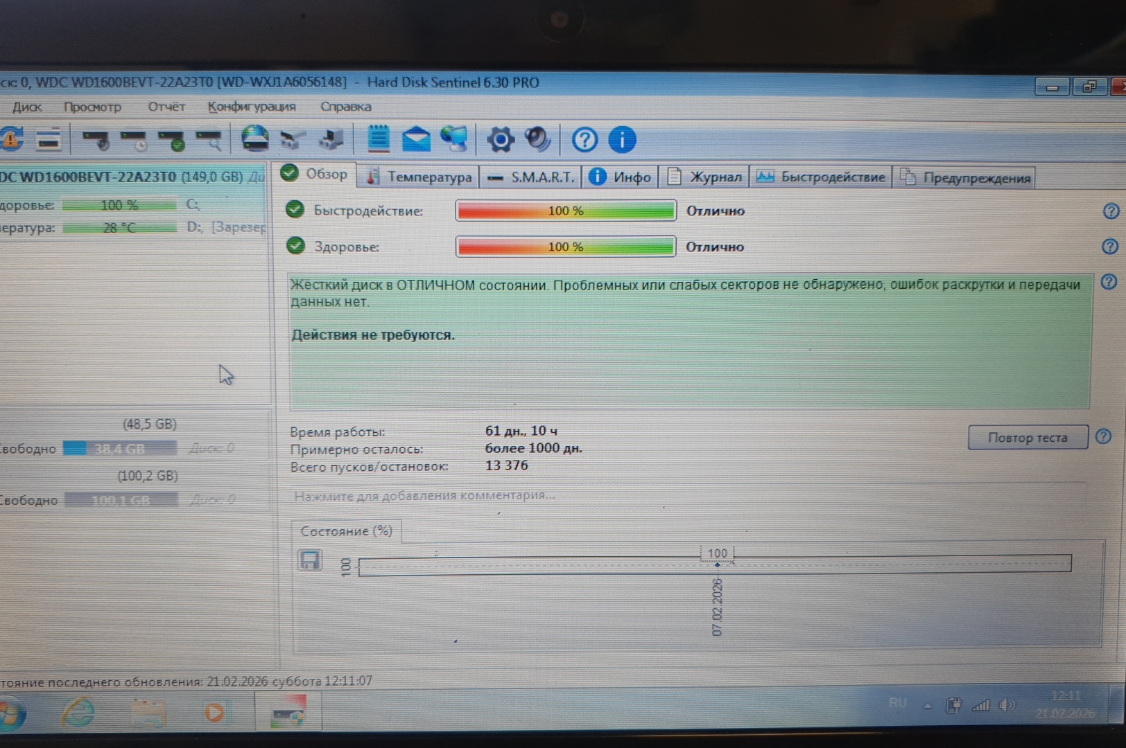 | Состояние HDD/SSD | 100% |