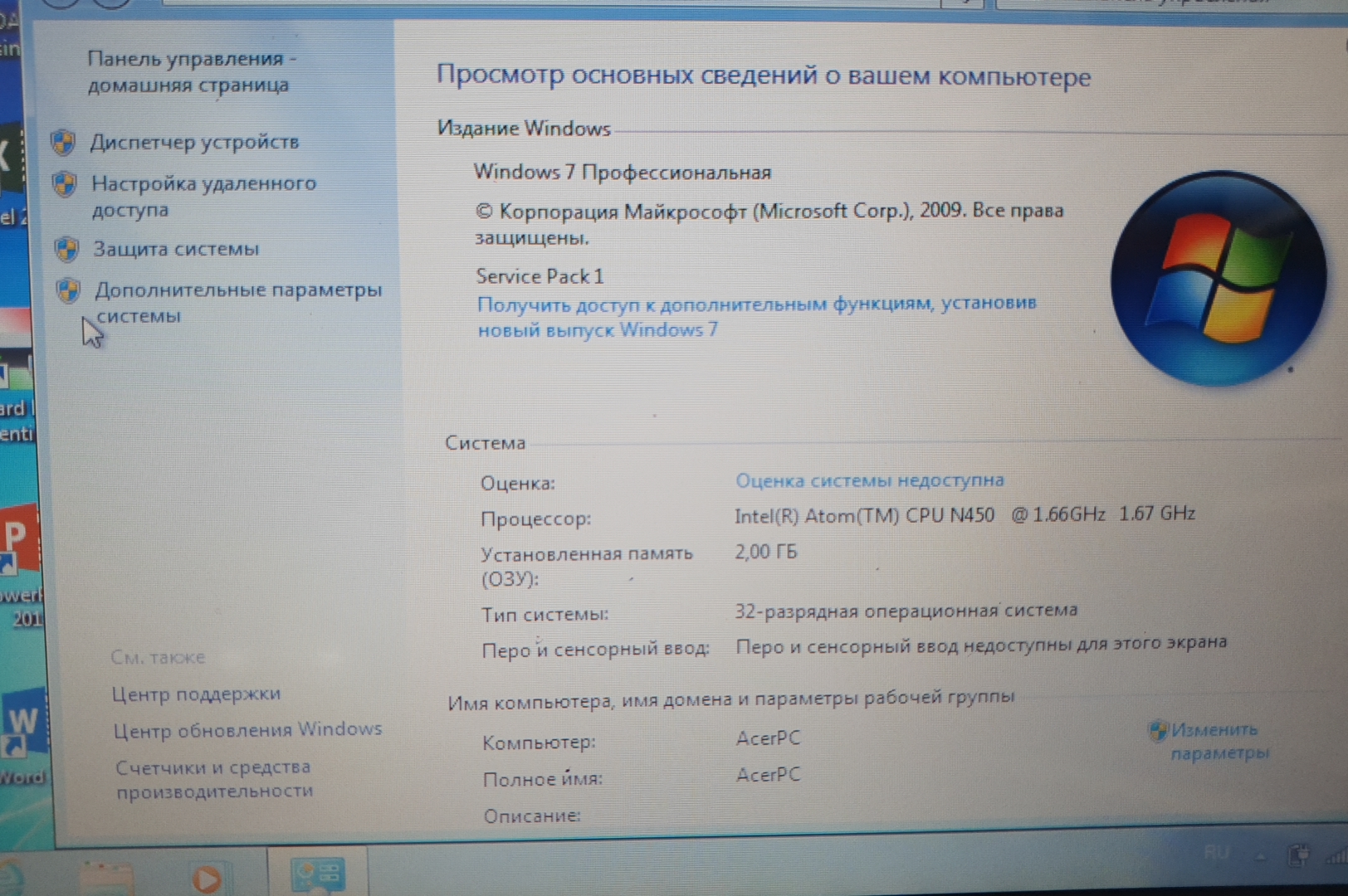 | Процессор | Intel Atom N450 1.66 GHz |