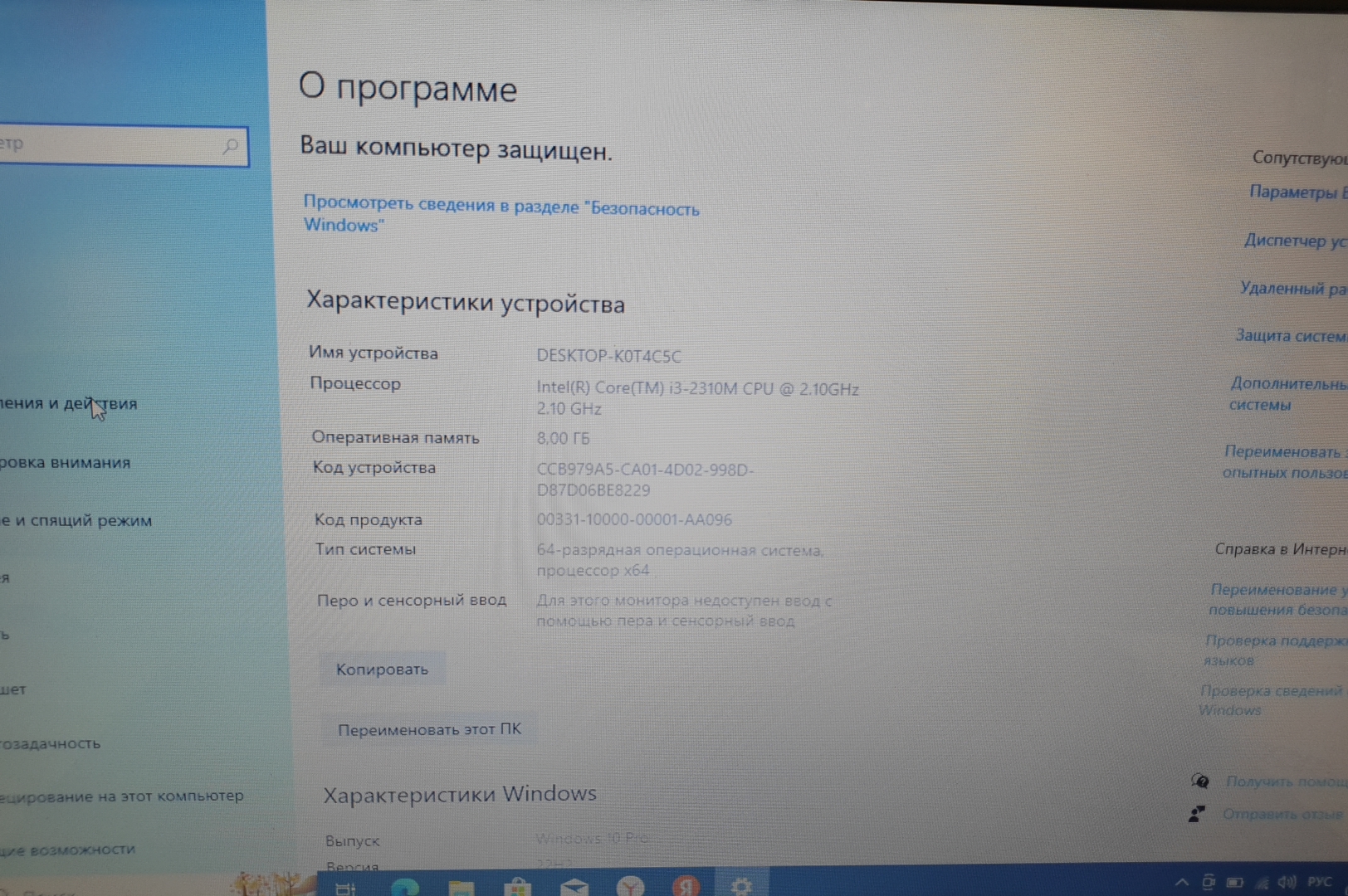 | Процессор | Intel Core i3-2310m 2.10 GHz |