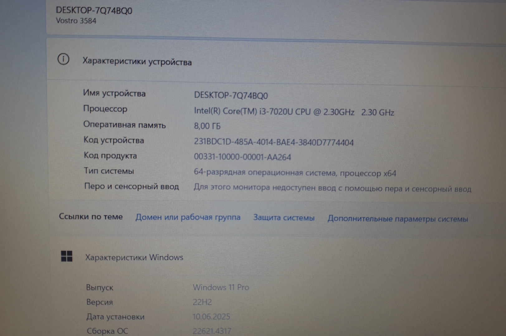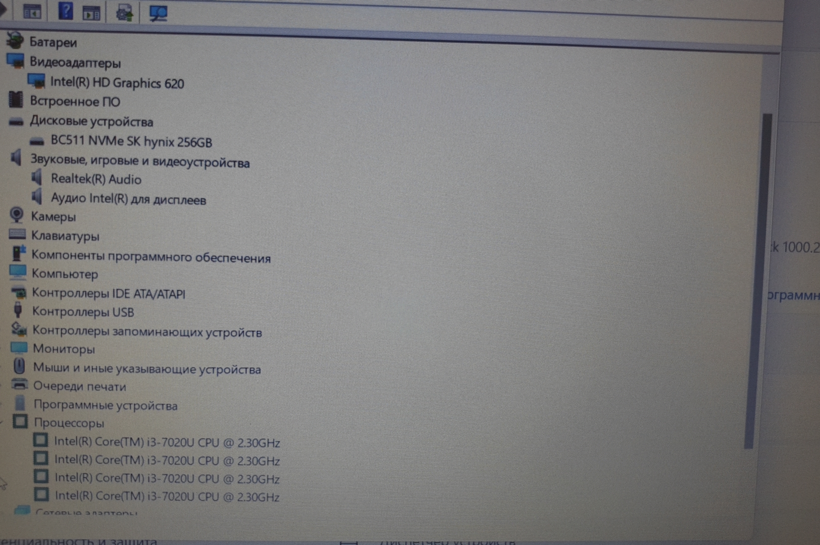 | Процессор | Intel Core i3-7020u 2.30 GHz |