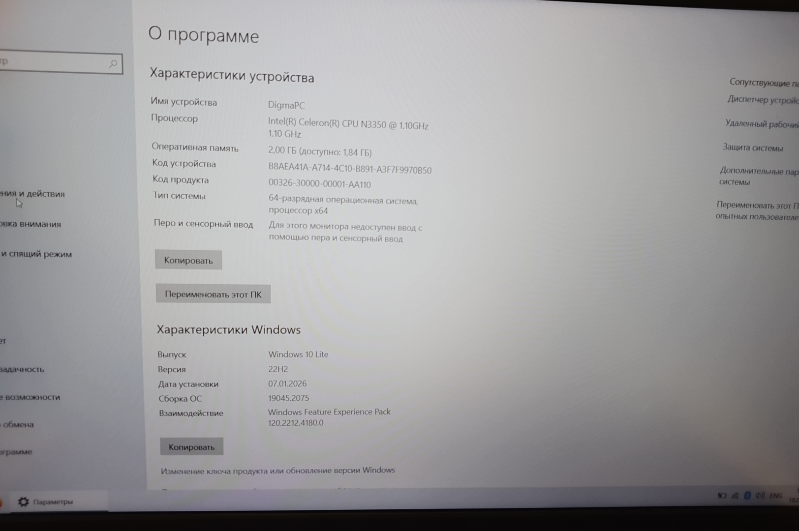 | Процессор | Intel Celeron N3350 1.10 GHz |