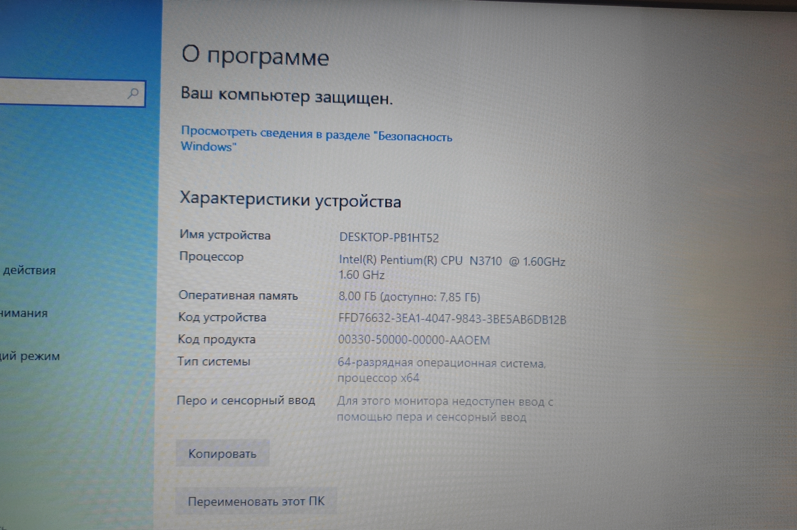 Процессор | Intel Pentium N3710 1.60 GHz |