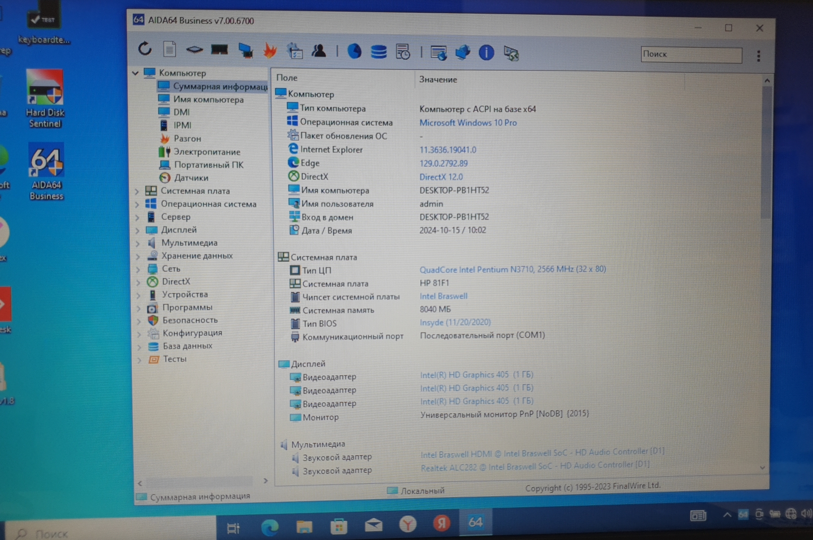 Видеокарта | Intel HD Graphics 405 |