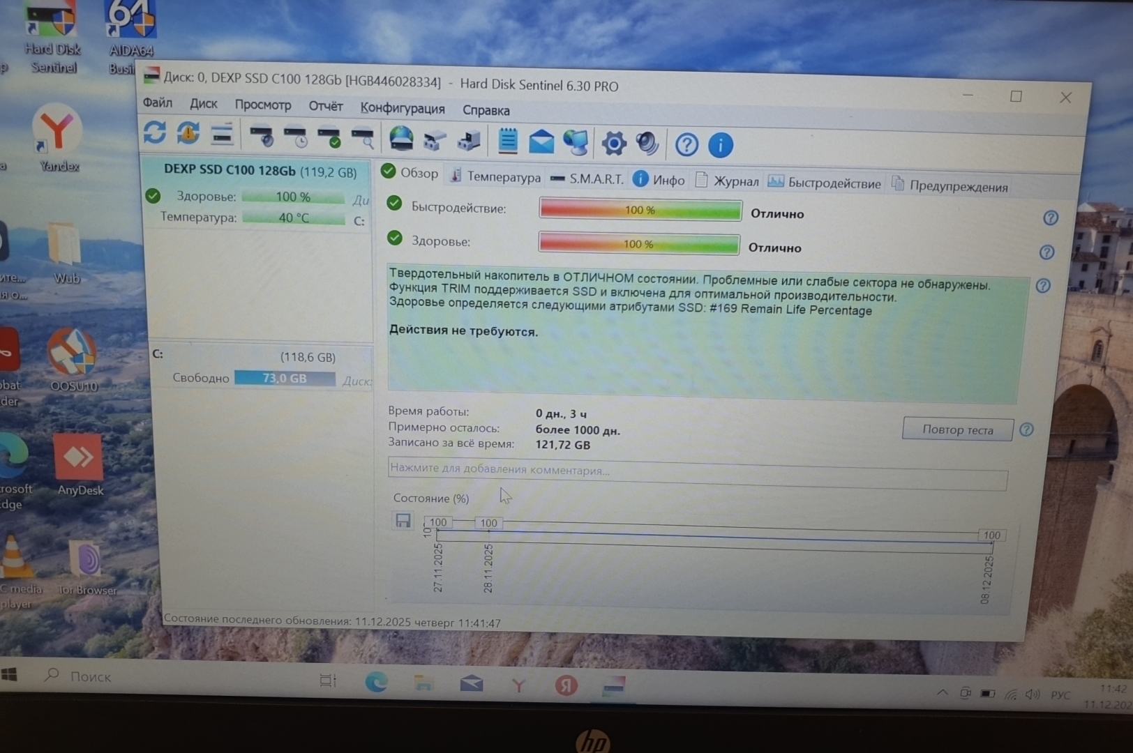 | Состояние HDD/SSD | 100% |