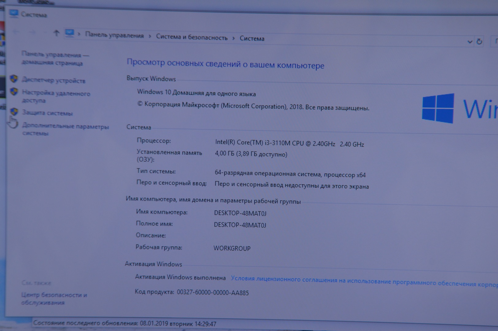 Система | Windows 10Sl Лицензия |