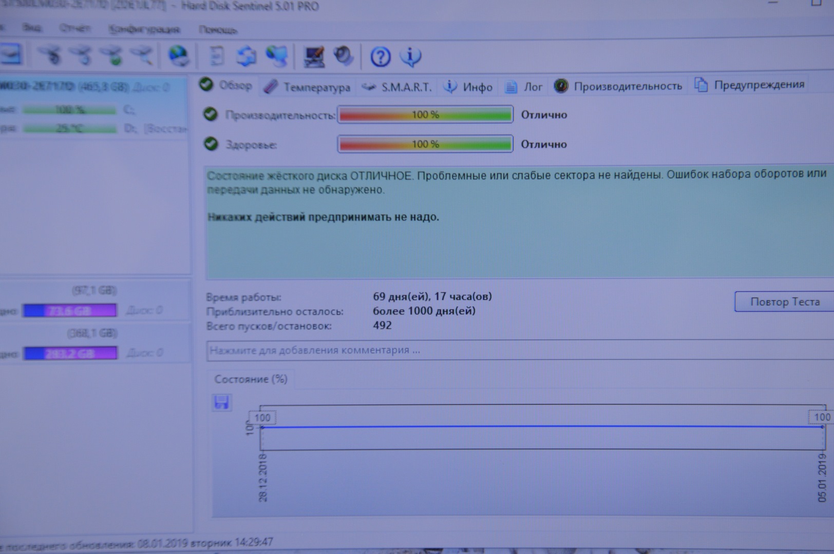 Состояние HDD/SSD | 100% |