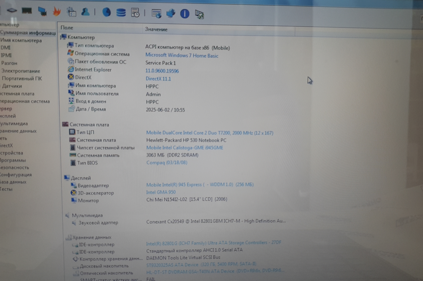 HP 530 (Intel Core2Duo T7200/3Gb/320Gb/Intel GMA 950/DVD-RW/15.4/Win 7)