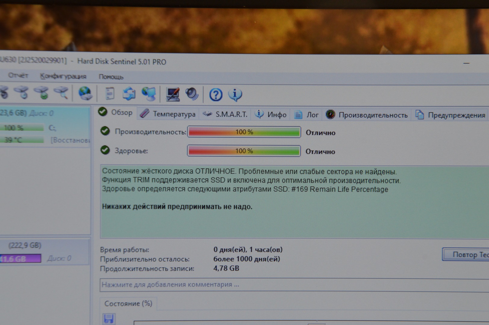 Состояние HDD/SSD | 100% |