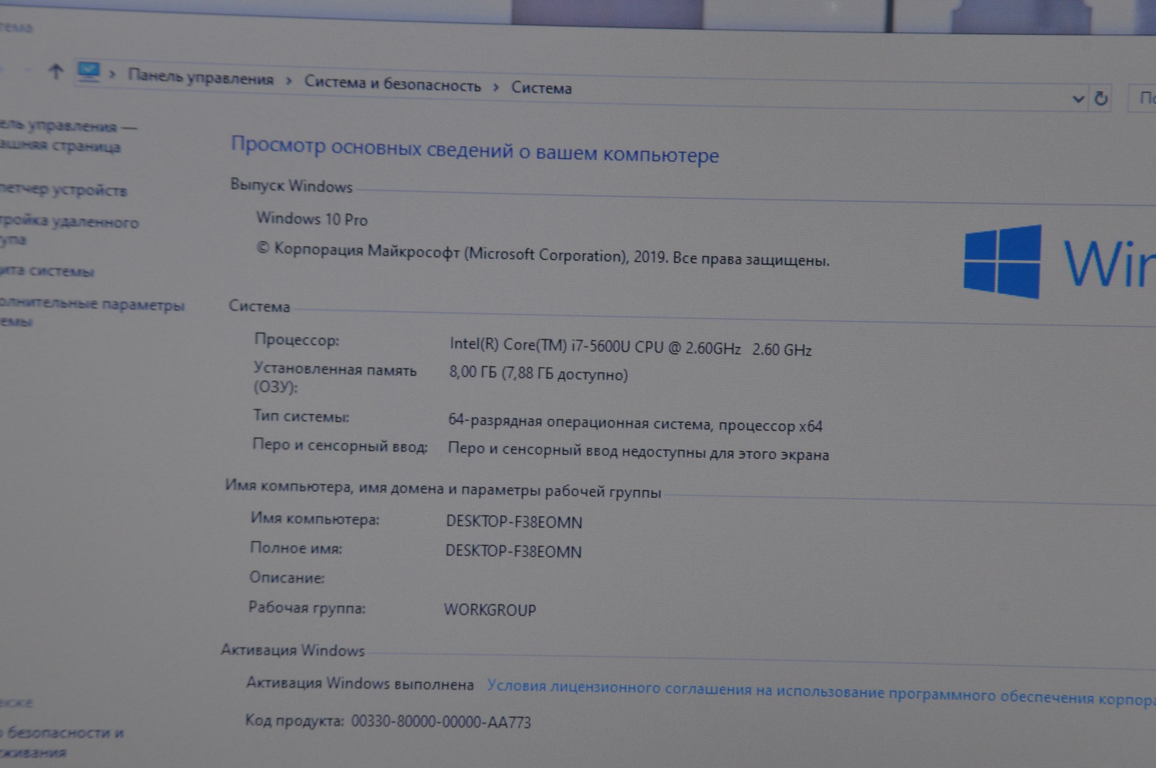 Система | Windows 10Pro Лицензия |