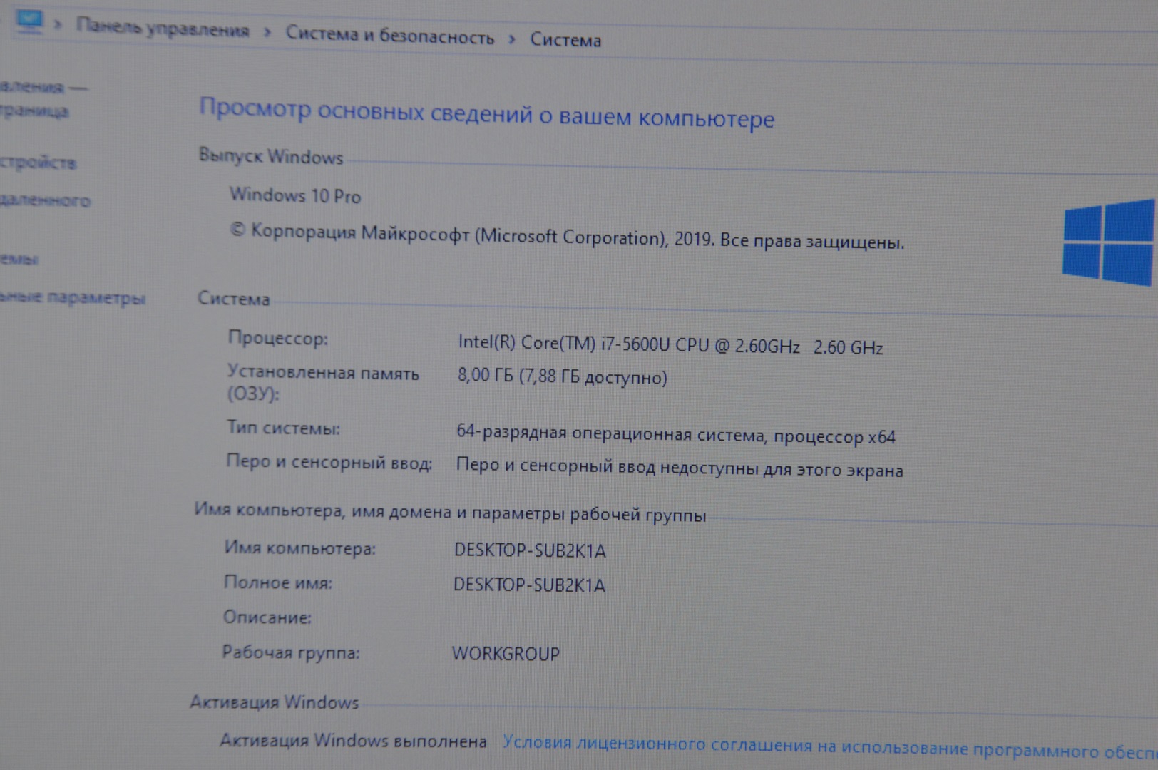 Система | Windows 10Pro Лицензия |