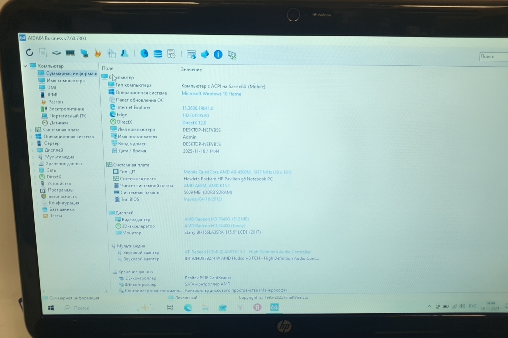 HP Pavilion g6-2053er (AMD A8-4500m/6Gb/SSD 128Gb+HDD 320Gb/AMD Radeon 7670m/15.6/Win 10)