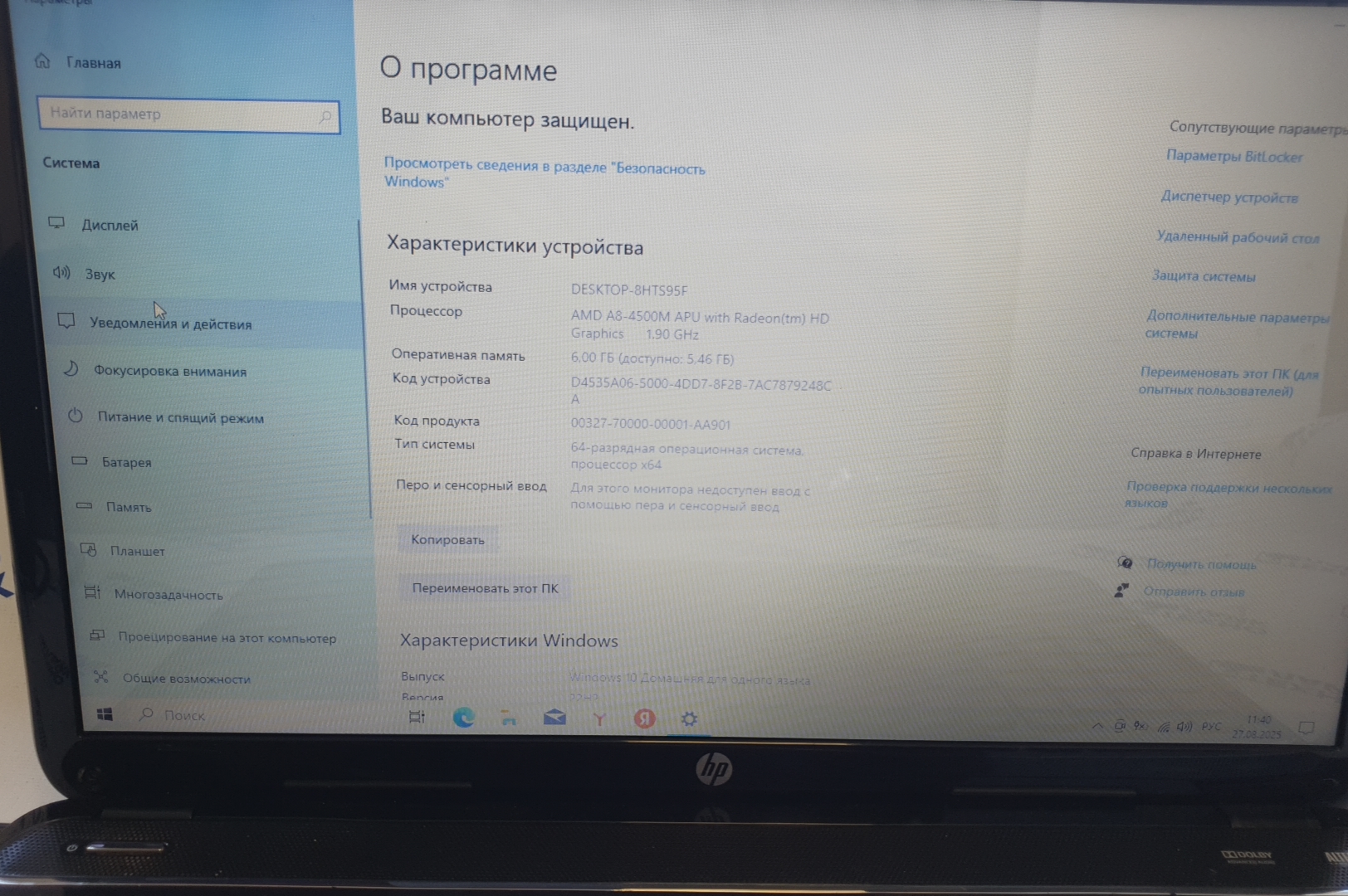 HP Pavilion g6-2205sr (AMD A8-4500/6Gb/SSD 256Gb/Radeon 7670 2Gb/DVD-RW/15.6/Win 10)