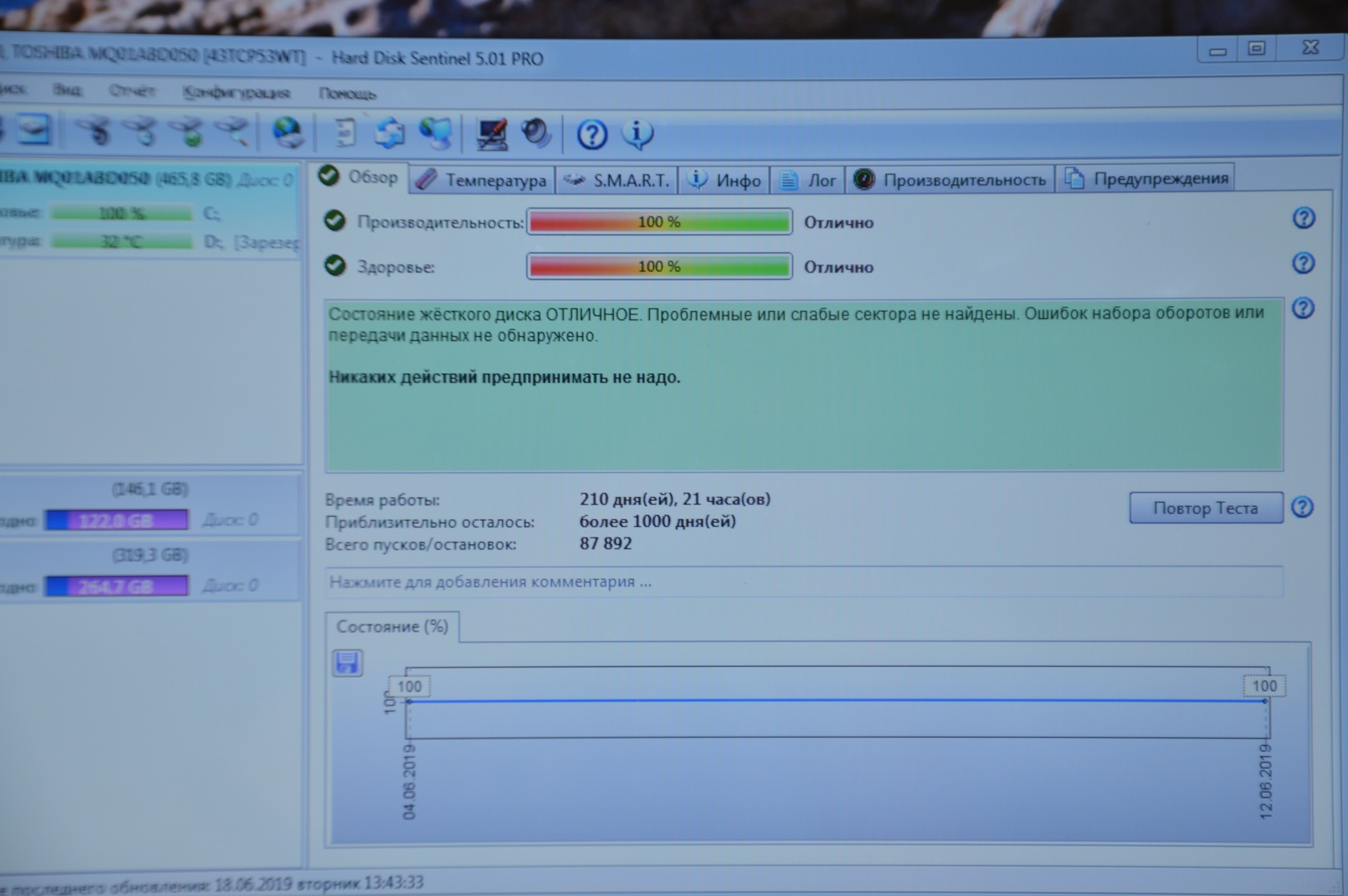 Состояние HDD/SSD | 100% |