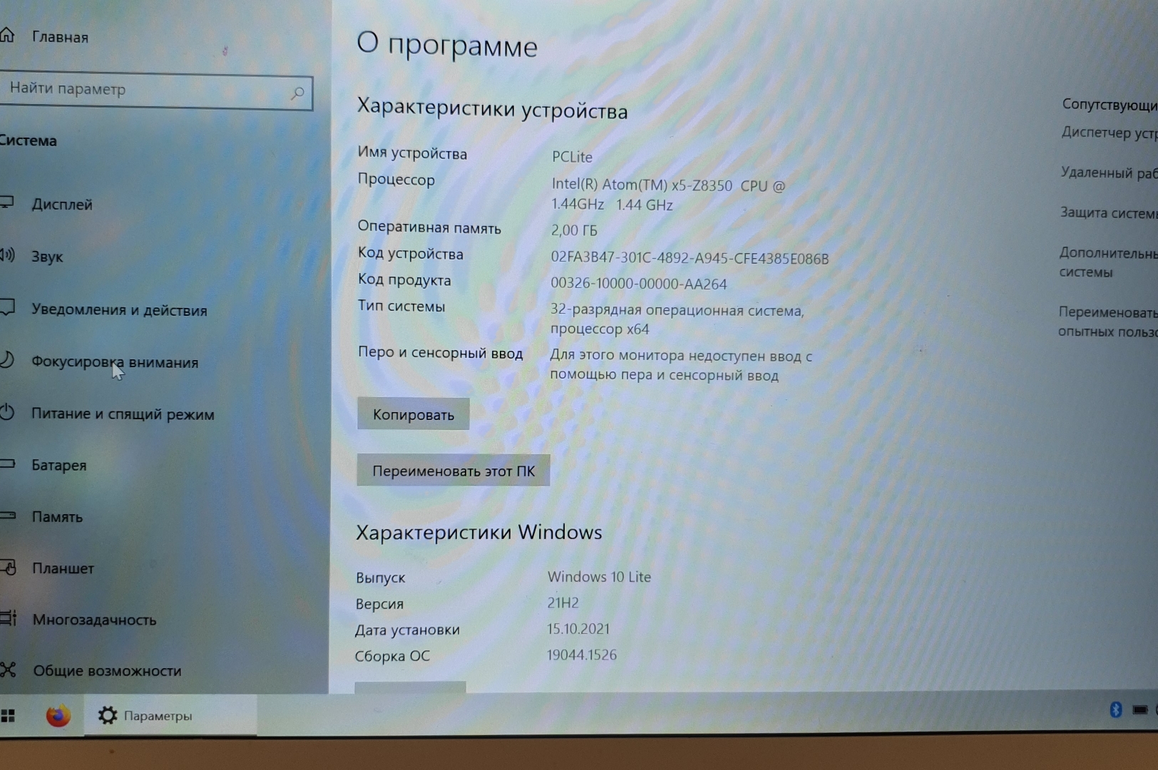 | Процессор | Intel Atom x5-8350 1.44 GHz |
