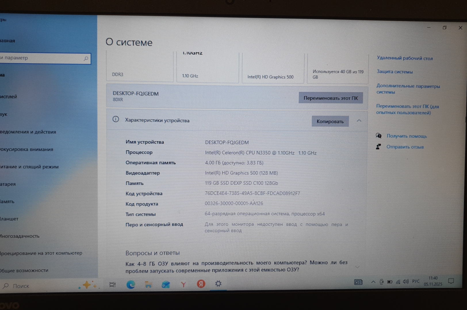 | Процессор | Intel Celeron N3350 1.10 GHz |