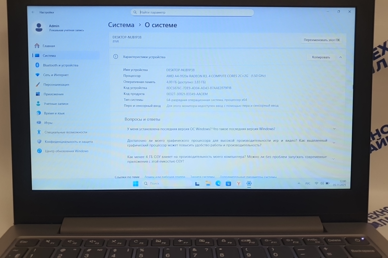 | Процессор | AMD A4-9120e 1.50 GHz |