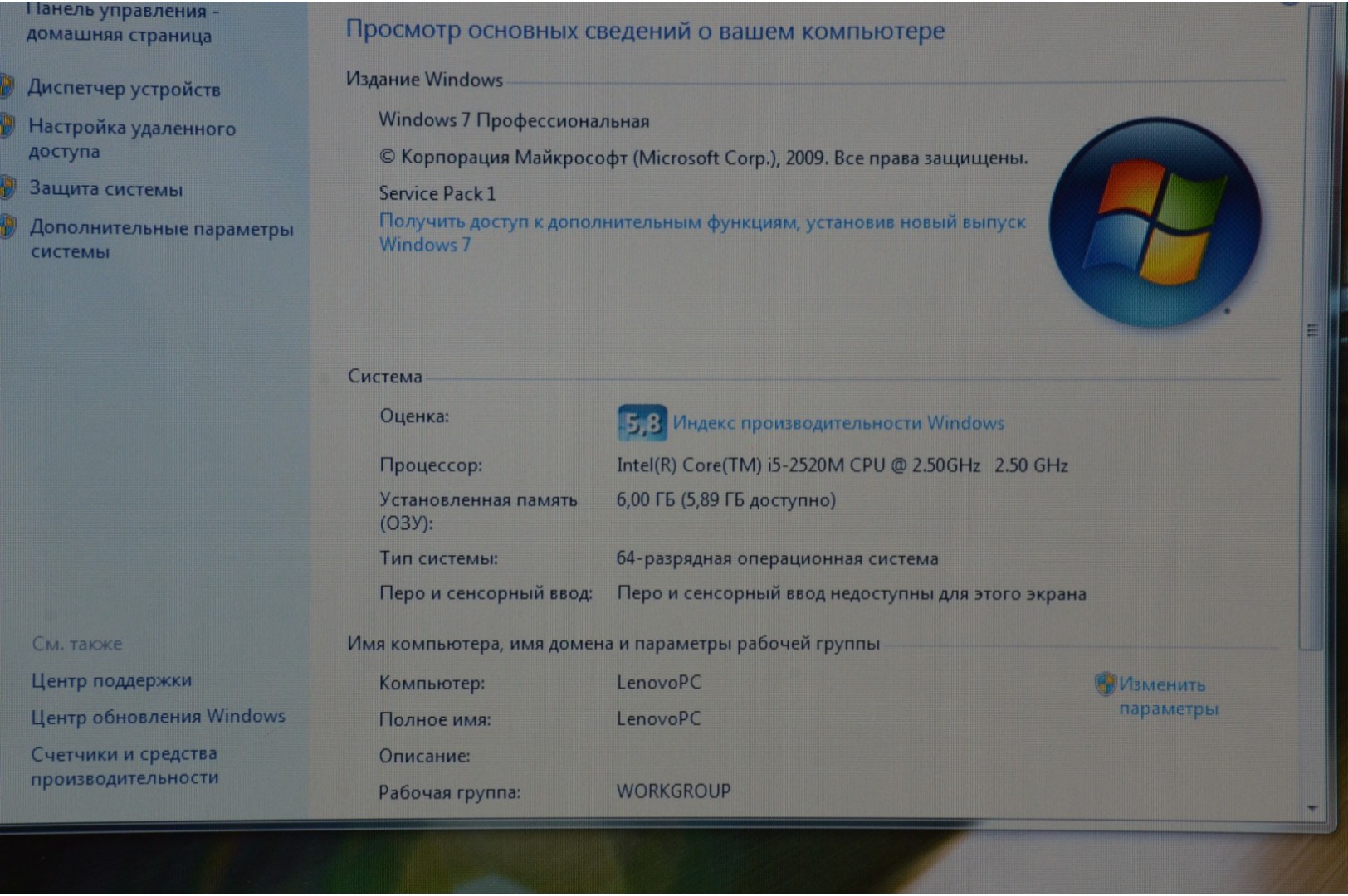 Система | Windows 7Pro Лицензия |