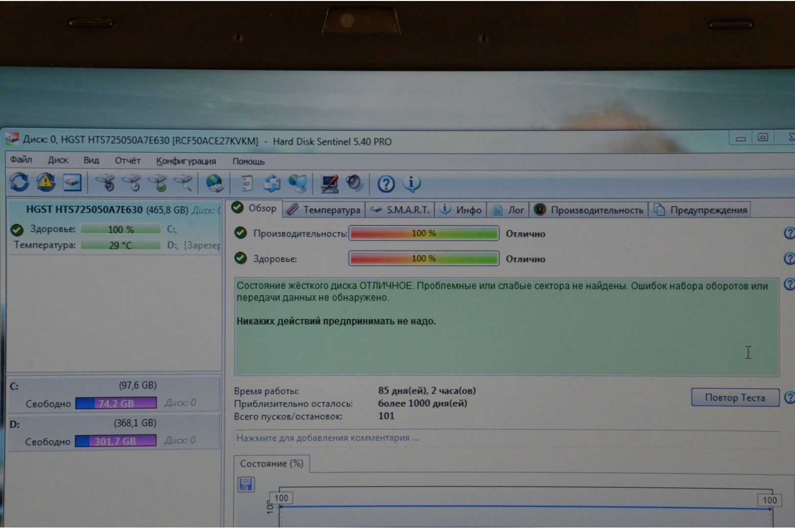 Состояние HDD/SSD | 100% |