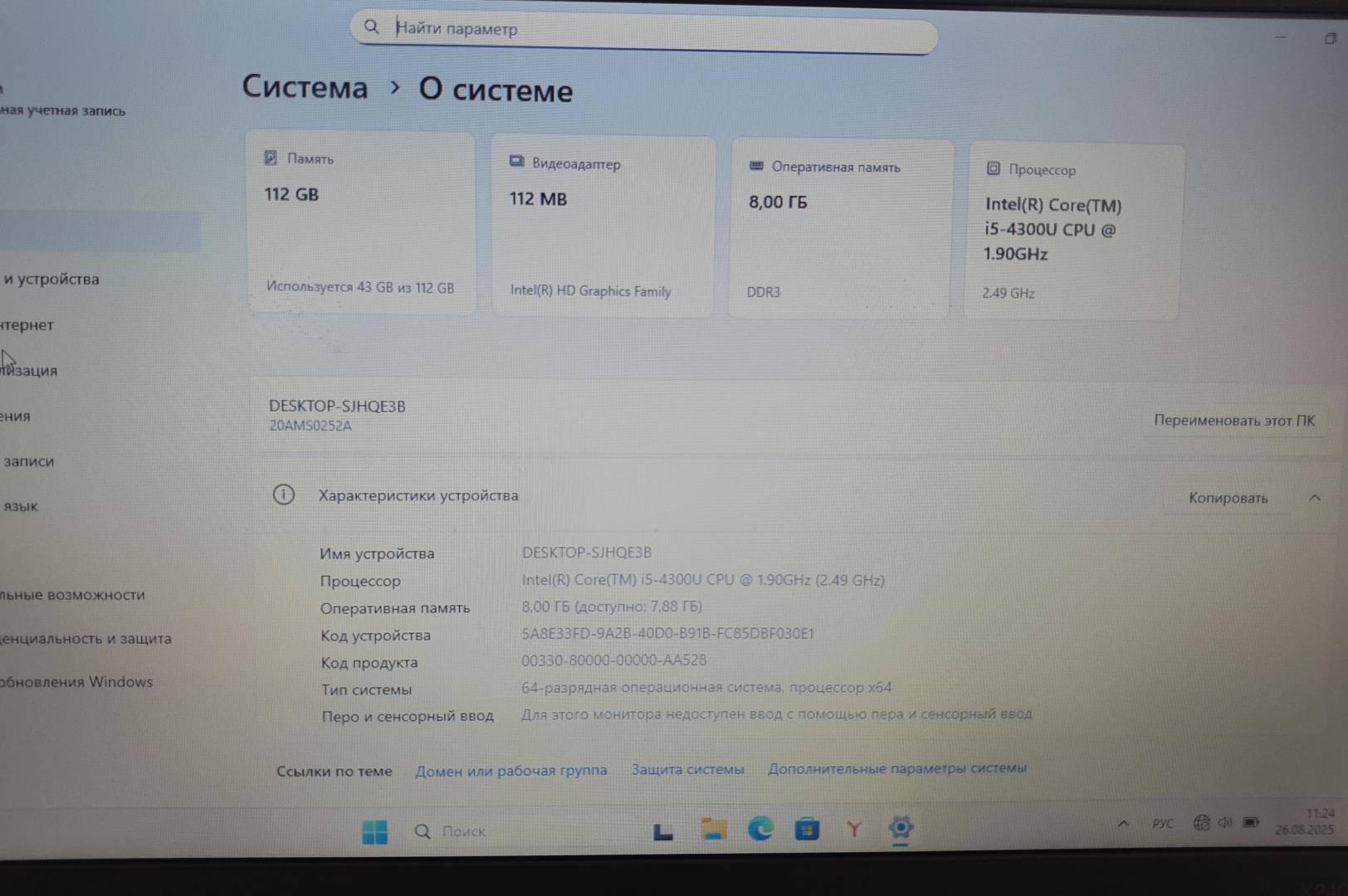 Процессор | Intel Core i5-4300u 1.90 GHz |