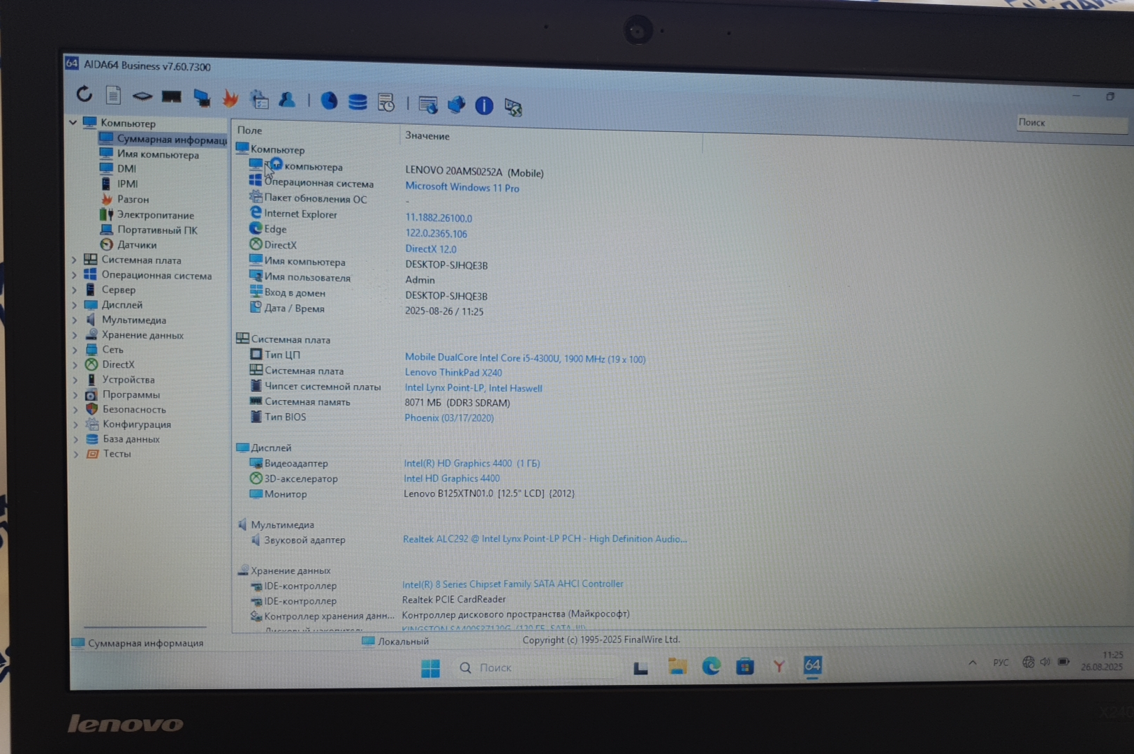 Lenovo ThinkPad X240 (Intel i5-4300u/8Gb/SSD 256gb/Intel HD 4400/12.5/Win 11)