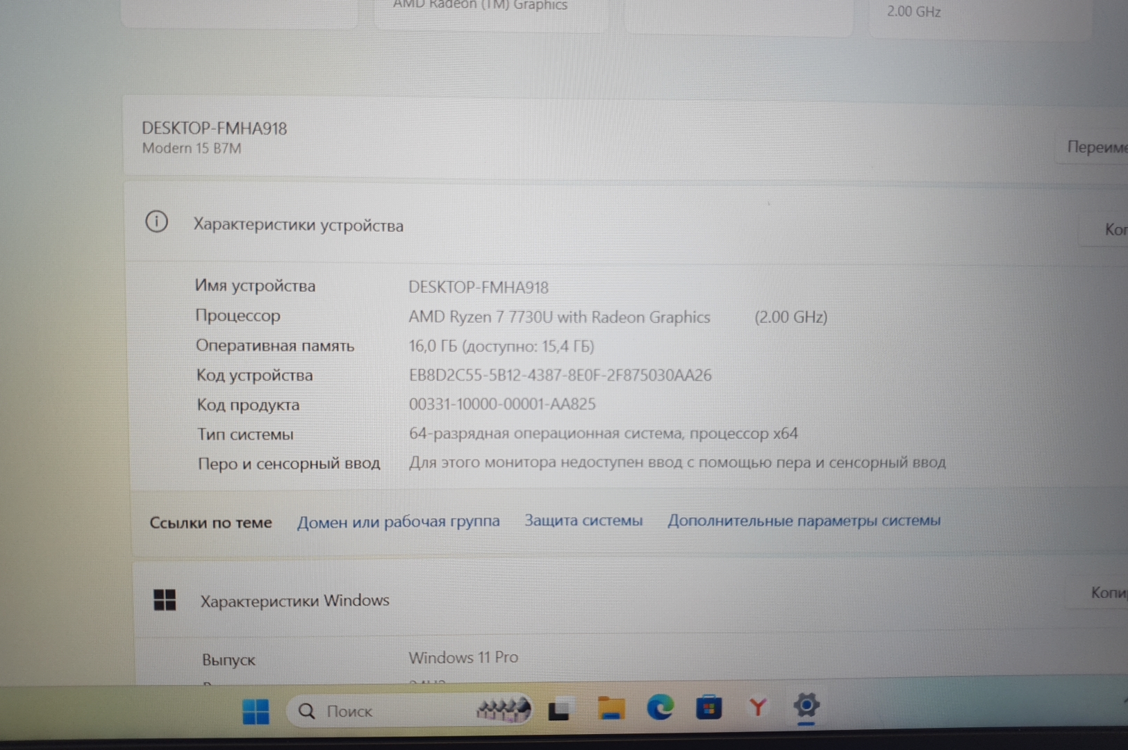 Процессор | AMD Ryzen 7 7730U 2.00 GHz |