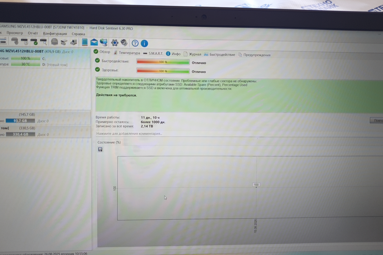 Состояние HDD/SSD | 100% |