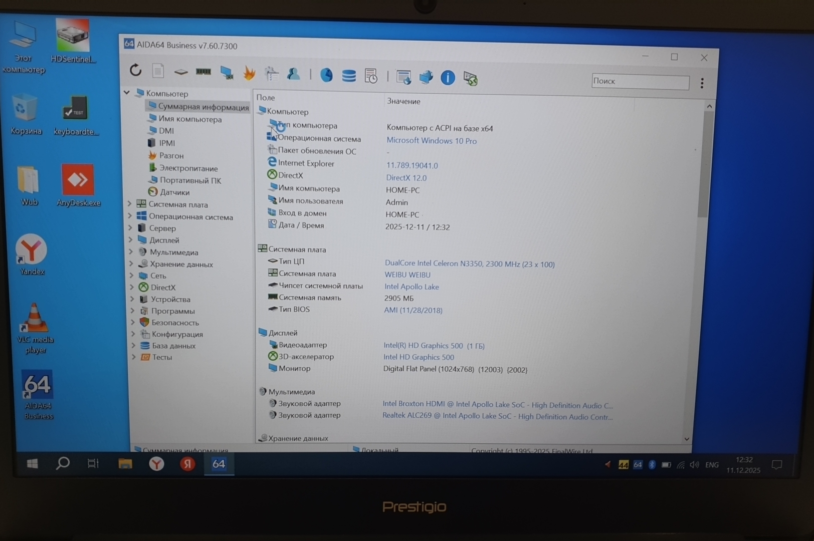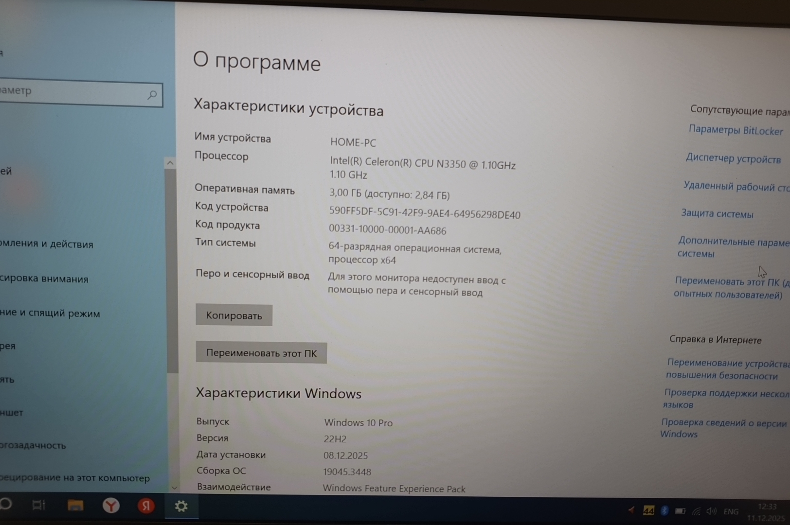 | Процессор | Intel Celeron N3350 1.10 GHz |