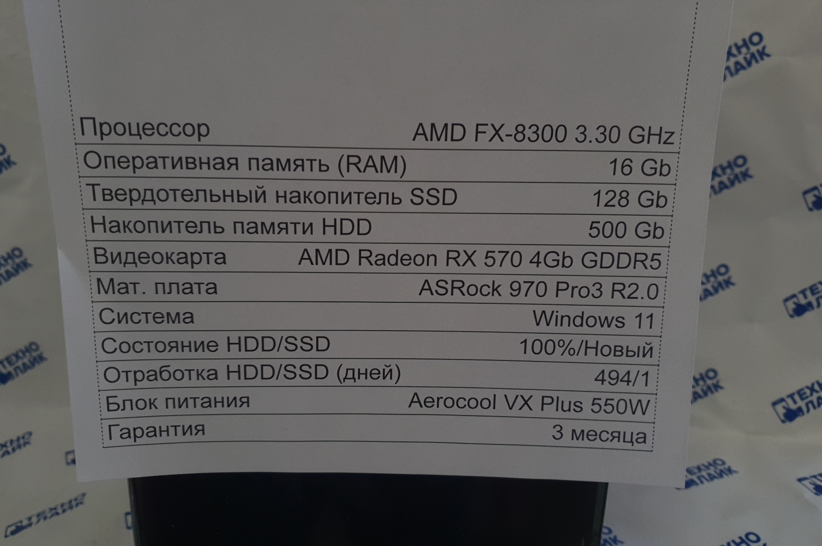 С/Б Iron Pride (AMD FX-8300/16Gb/SSD 128Gb + HDD 500Gb/AMD Radeon RX 570/Win 11/БП 550W)