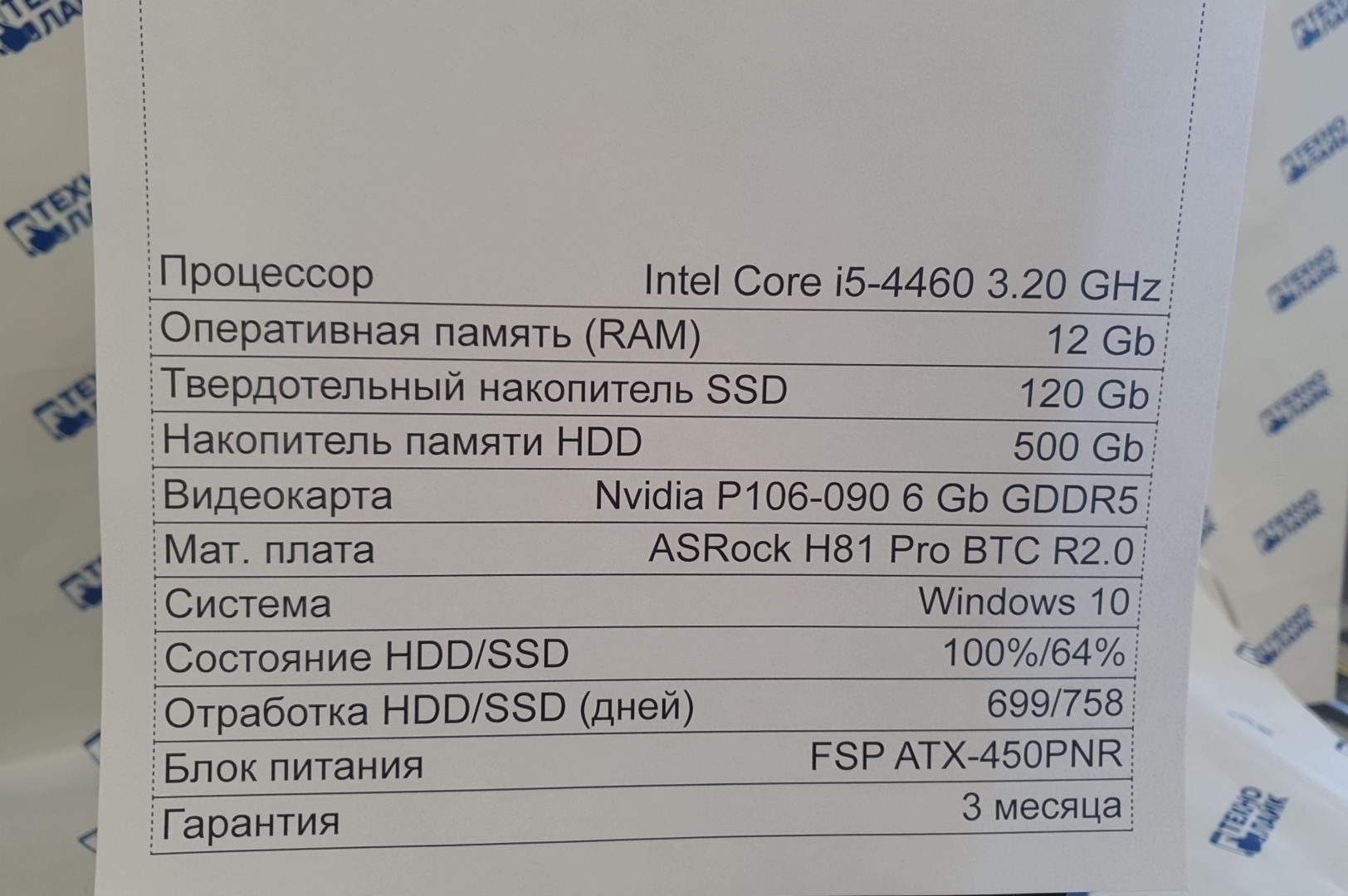 Системный блок (Intel Core i5-4460/12Gb/SSD 120Gb + 500Gb/Nvidia P106-100/Win 10/БП 450W)