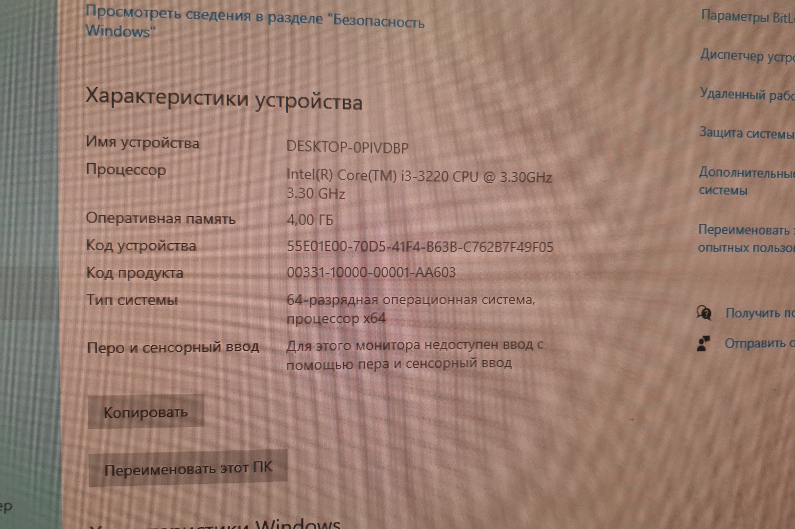 | Процессор | Intel Core i3-3220 3.30 GHz |
