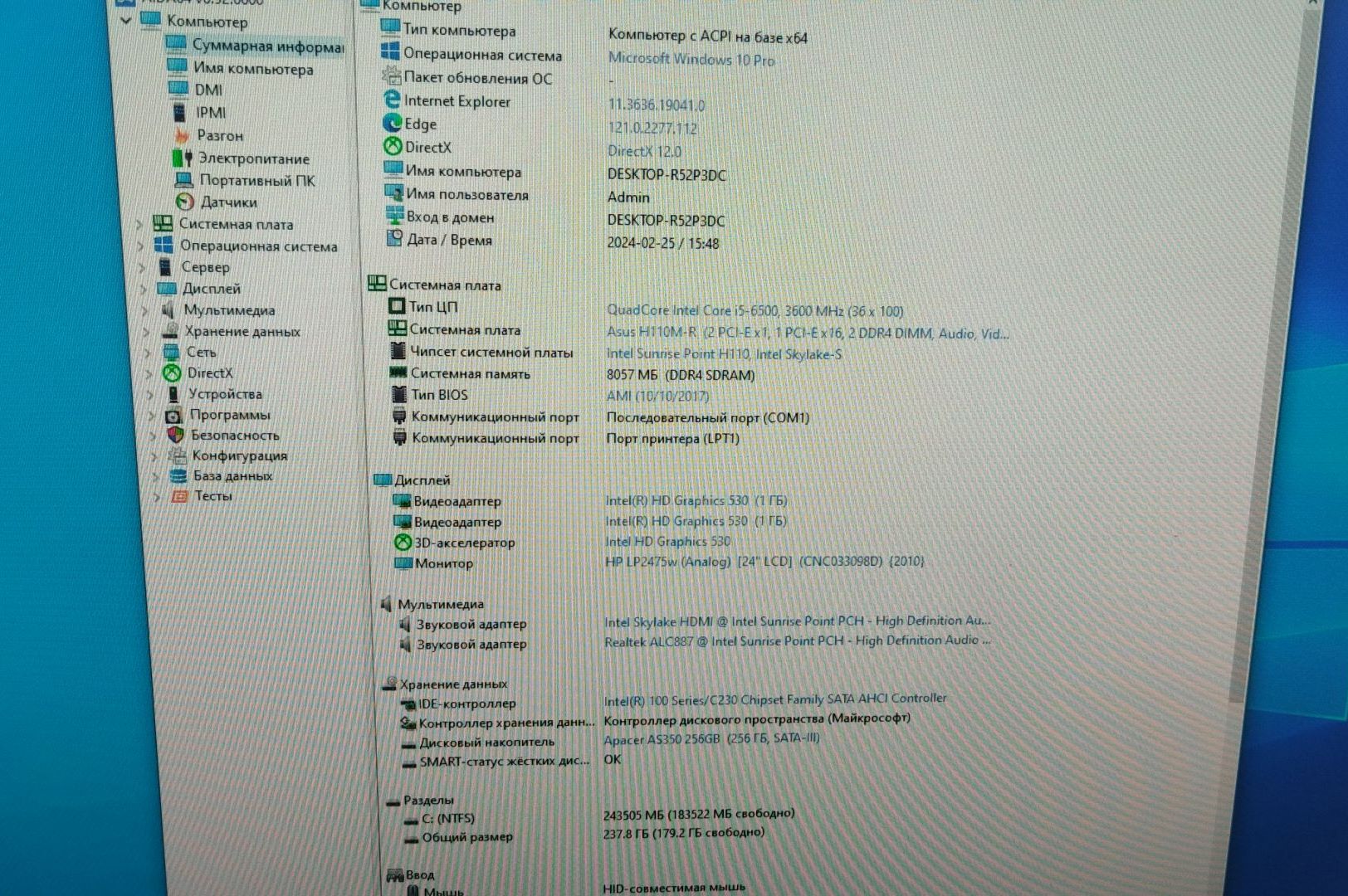 Системный блок (Intel Core i5-6500/8Gb/SSD 256Gb/Intel HD 530/Win 10)