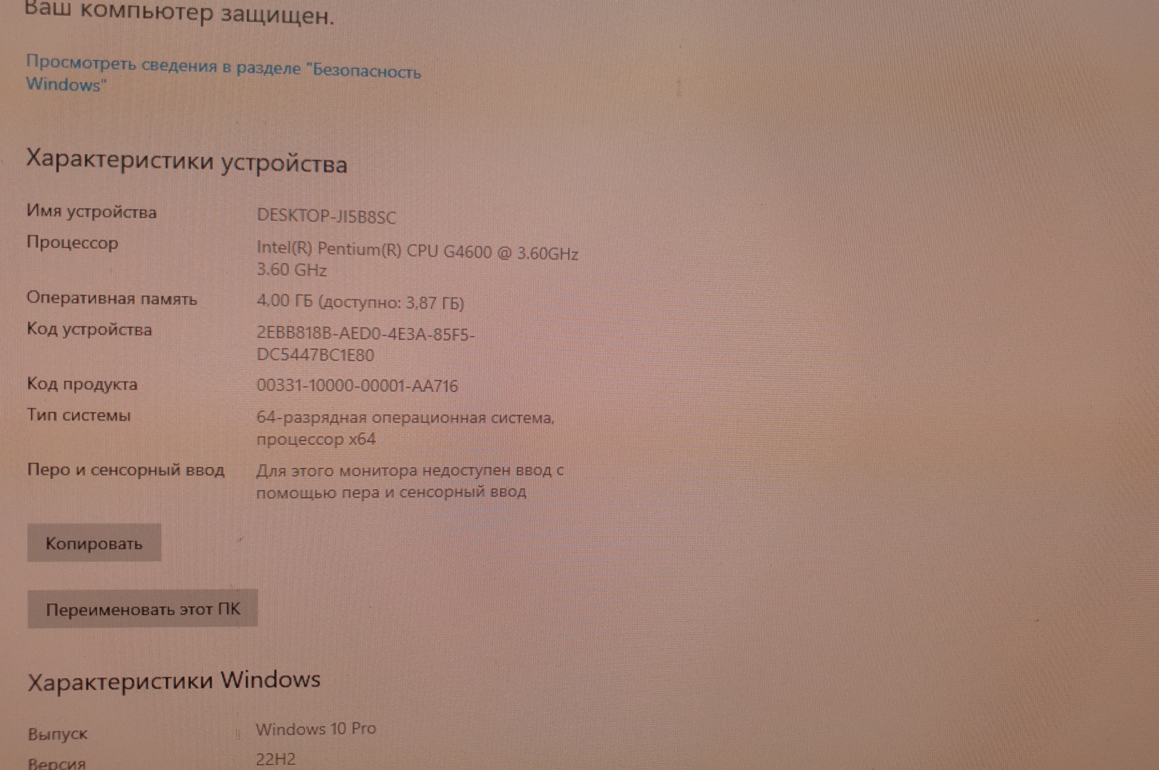 Системный блок (Intel Pentium G4600/4Gb/SSD 128Gb/Intel HD 630/Win 10)