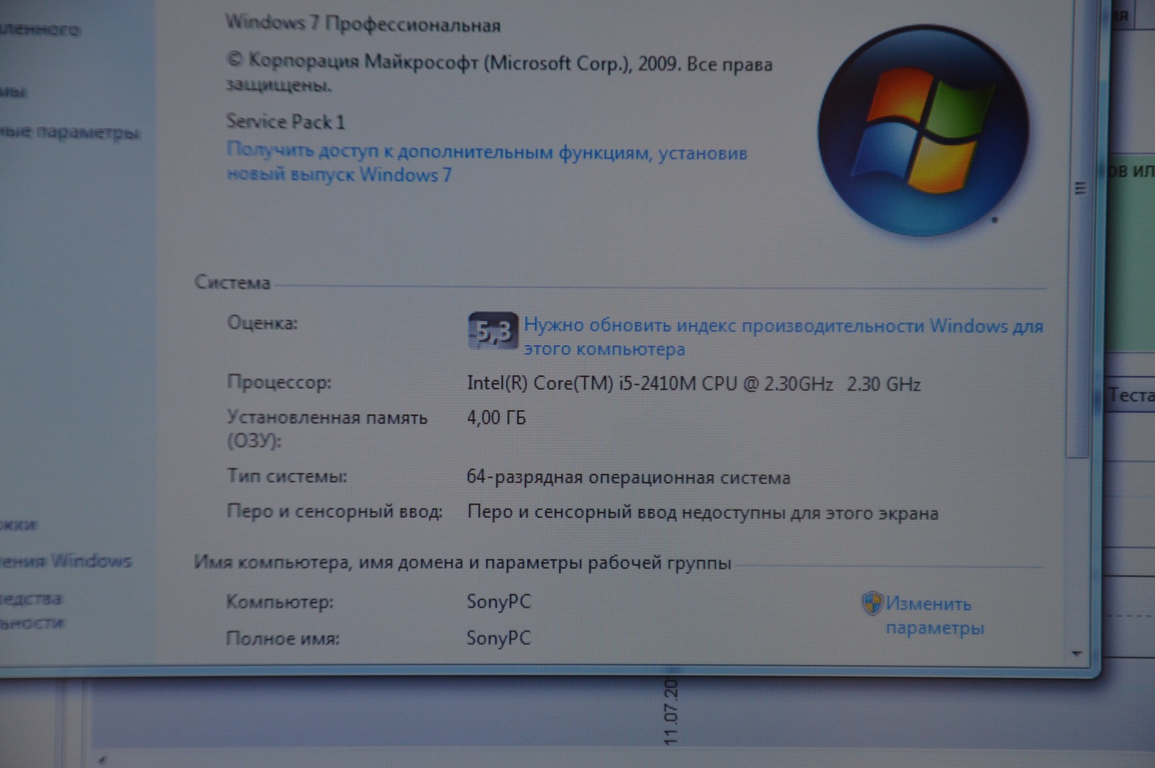 Процессор | Intel Core i5-2410m 2.30 GHz |
