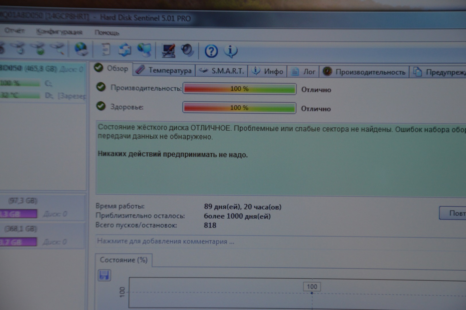 Состояние HDD/SSD | 100% |