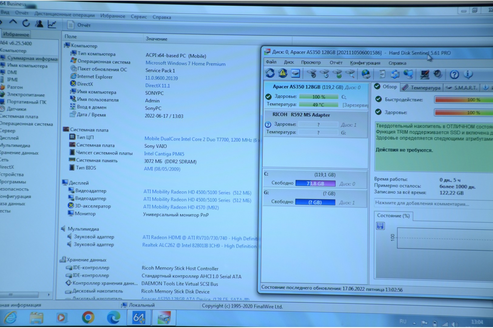Sony PCG-5T1V (Intel Core 2 Duo T7700/3Gb/SSD 128Gb/ATI Radeon HD 4570/13.3"/Win 7Hp)