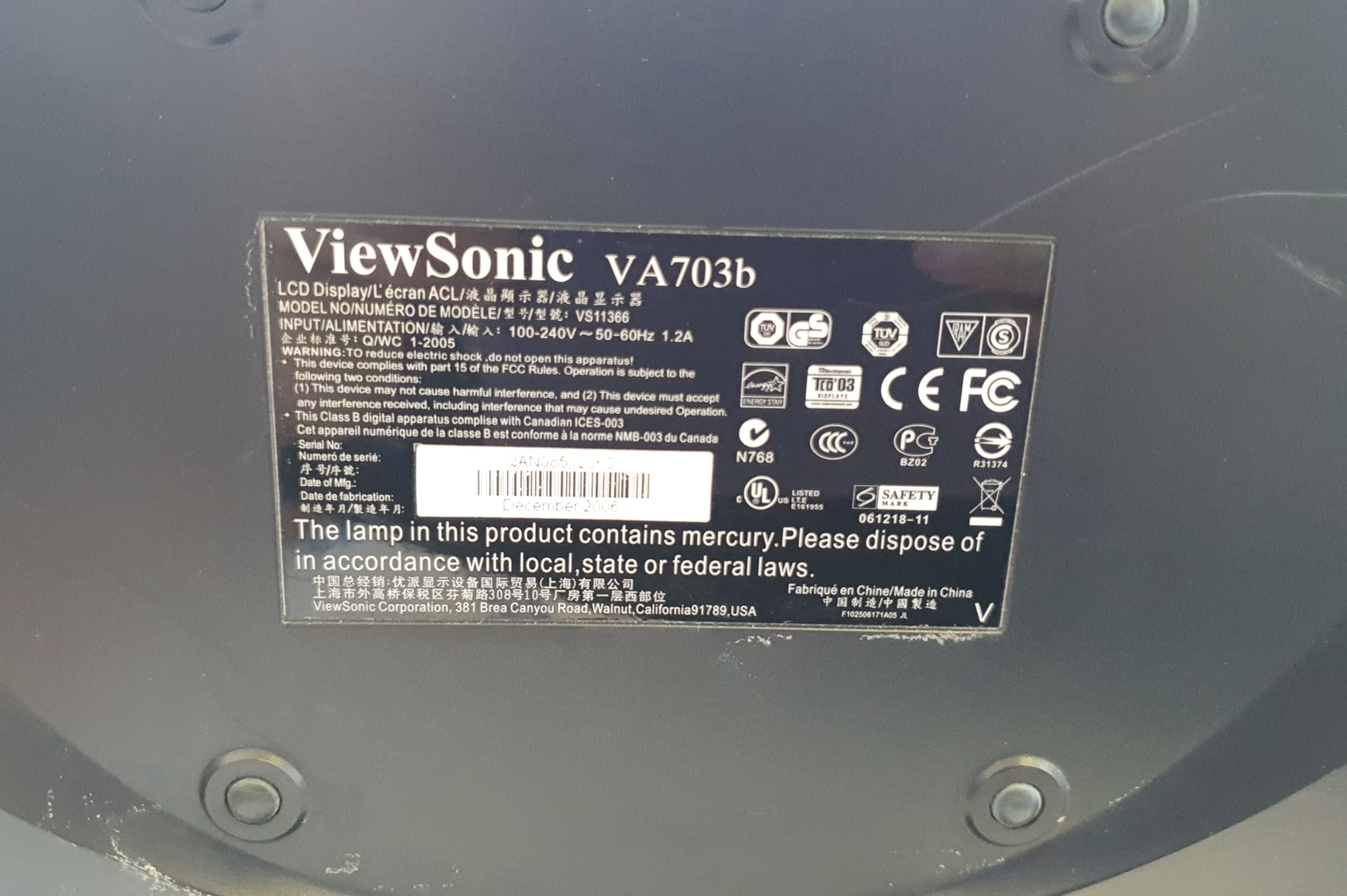 Монитор ViewSonic VA703b б/у
